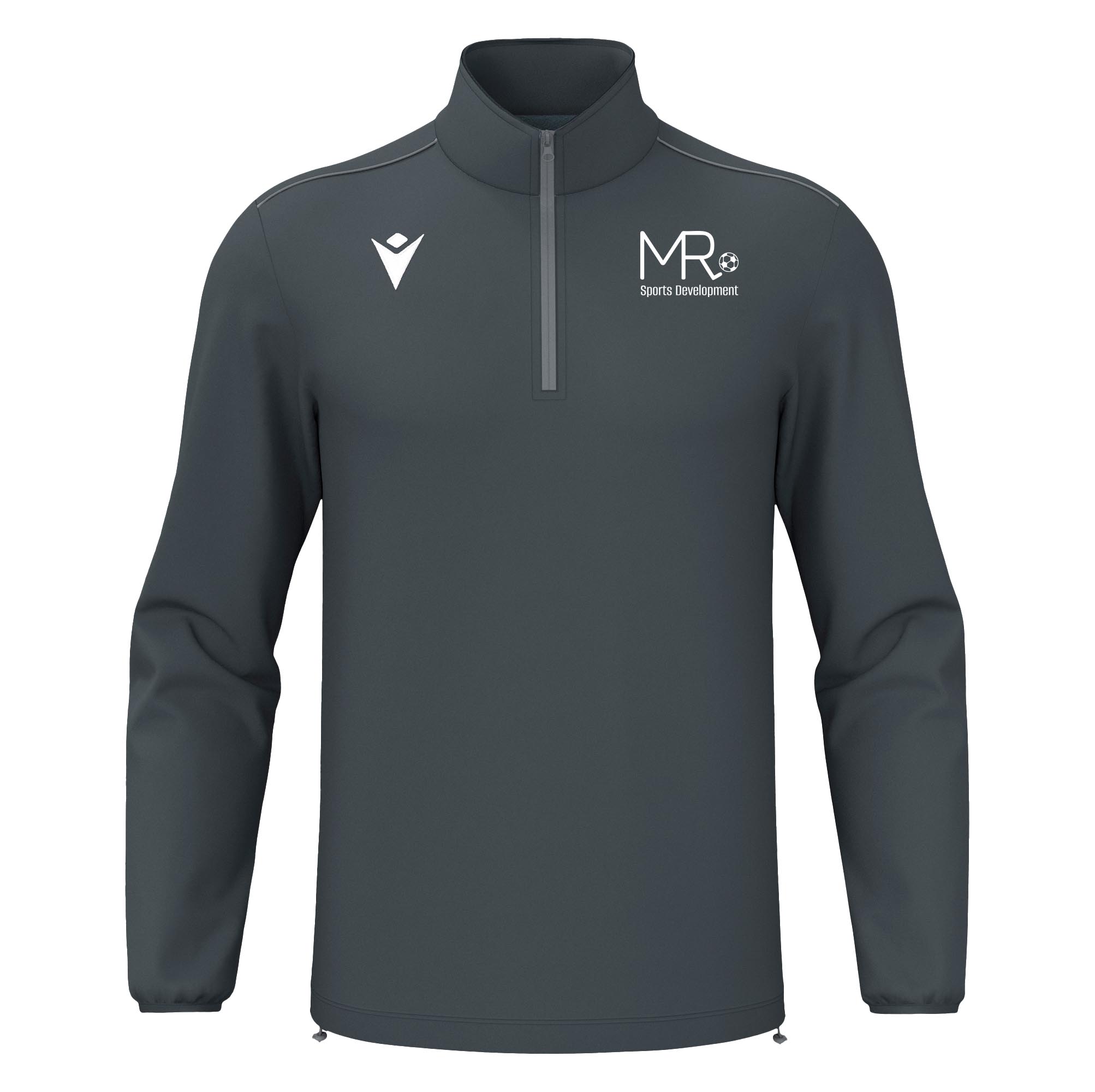 This anthracite, 1/4 Zip Top is entirely made from poly dry fabric.