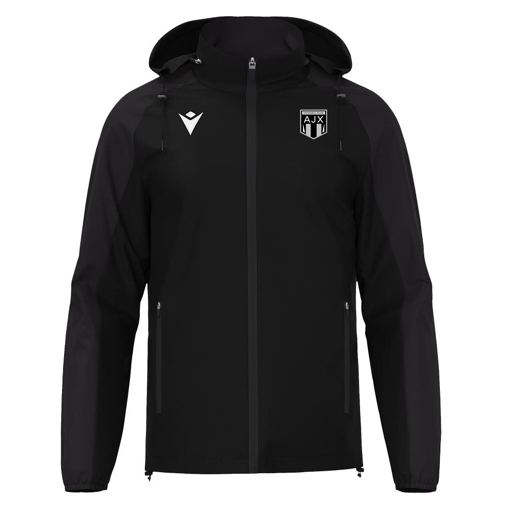 Featuring full-length reversed central zip and side pockets with zip closures. Hood packed in collar, elasticated cuffs and drawstring bottom. Tone-on-tone inserts on sleeves.