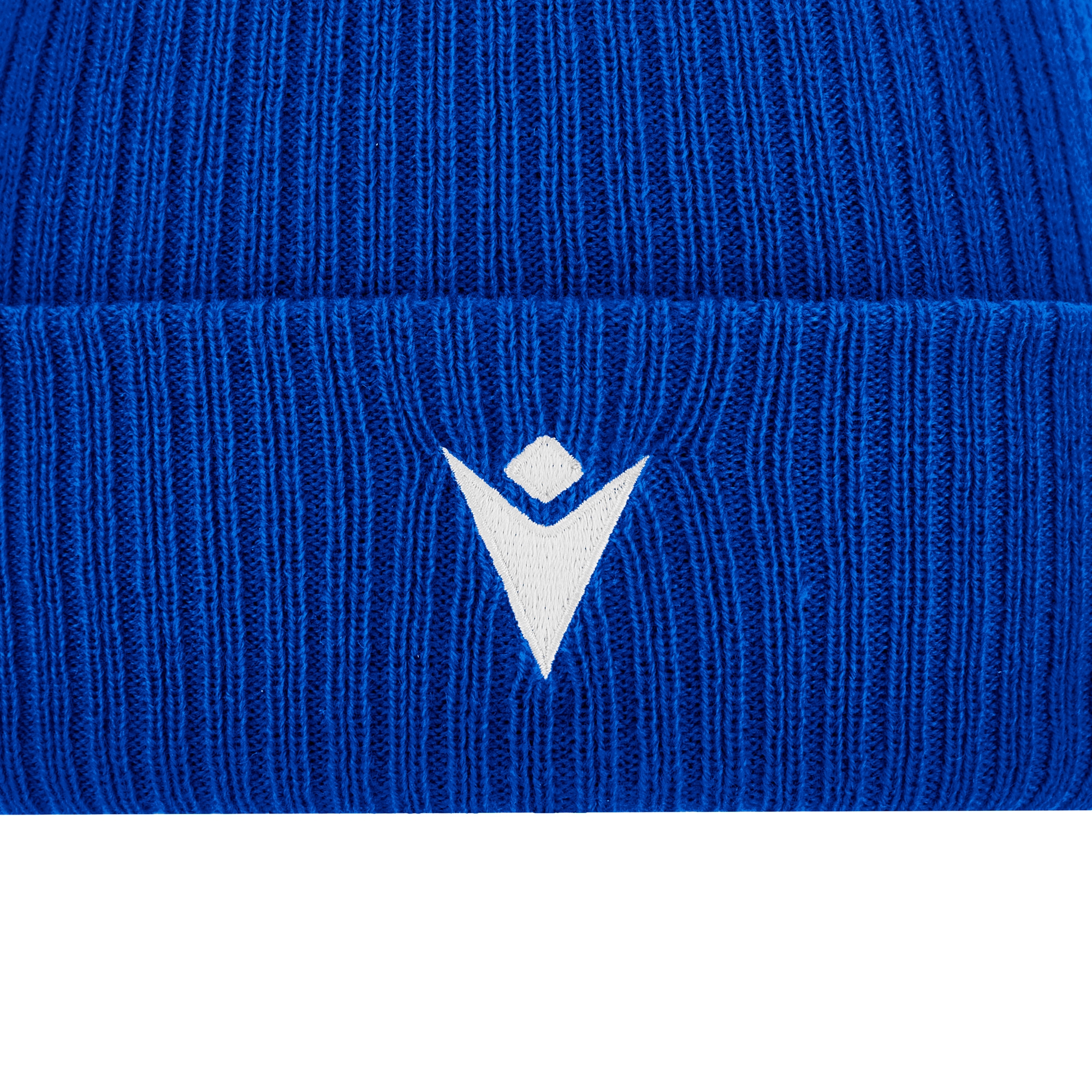 This royal Macron bobble hat features the Leven AFC badge embroidered across the front and Macron hero on the side.