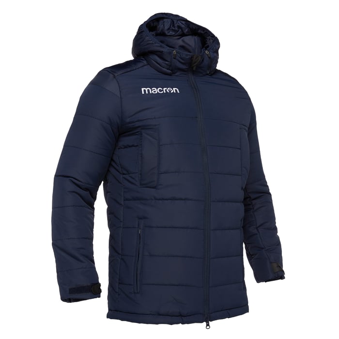 Features hand-warmer slots with a fleeced layer beneath the pocket, practical zipped side pockets, hood, knitted cuffs, adjustable sleeves with fastening in die-cut micro Velcro, neoprene inner save neck and a practical full-length central zip.