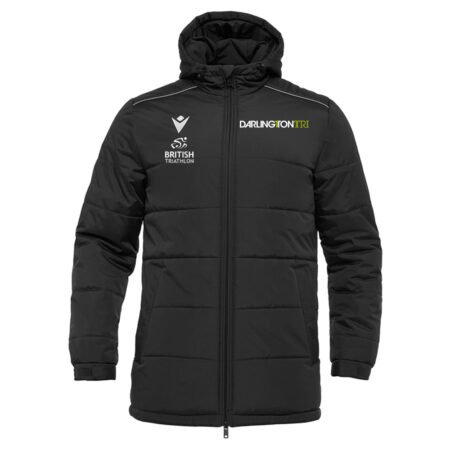 Embroidered DarlingtonTri club logo on chest. Embroidered British Triathlon logo on opposite chest