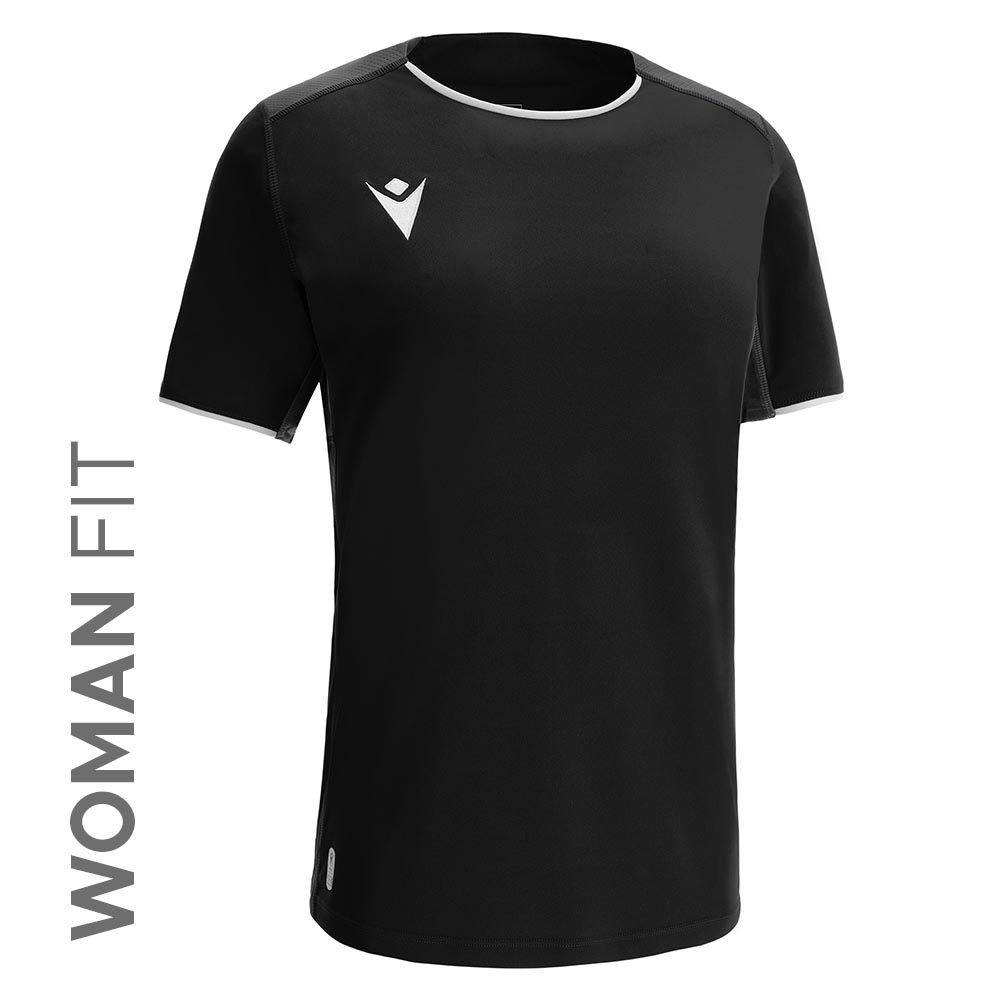 Made in Eco-Softlock fabric, created from 100% recycled PET, this shirt features a crew neck and sleeve cuffs with piping in the main fabric.